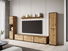 Obývací stěna se skládá z několika samostatně stojících prvků nebo jsou jednotlivé kusy nábytku k sobě přimontovány. Obvykle jsou to TV stolky, vitríny, poličky a menší skříňky. Minimalistický styl představuje sestava stolku pod televizor s vyššími nožičkami, jedna polička a maximálně dva závěsné úzké regály nebo vitríny. Pokud potřebujete více úložného prostoru, vybírejte z nabídky luxusních obývacích stěn z masivního dřeva. Oblíbená je také kombinace dřevěného korpusu a dvířek v lesklém finiši.