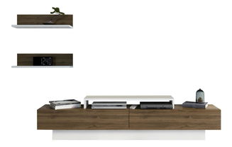 Obývací stěna se skládá z několika samostatně stojících prvků nebo jsou jednotlivé kusy nábytku k sobě přimontovány. Obvykle jsou to TV stolky, vitríny, poličky a menší skříňky. Minimalistický styl představuje sestava stolku pod televizor s vyššími nožičkami, jedna polička a maximálně dva závěsné úzké regály nebo vitríny. Pokud potřebujete více úložného prostoru, vybírejte z nabídky luxusních obývacích stěn z masivního dřeva. Oblíbená je také kombinace dřevěného korpusu a dvířek v lesklém finiši.