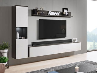 Obývací stěna se skládá z několika samostatně stojících prvků nebo jsou jednotlivé kusy nábytku k sobě přimontovány. Obvykle jsou to TV stolky, vitríny, poličky a menší skříňky. Minimalistický styl představuje sestava stolku pod televizor s vyššími nožičkami, jedna polička a maximálně dva závěsné úzké regály nebo vitríny. Pokud potřebujete více úložného prostoru, vybírejte z nabídky luxusních obývacích stěn z masivního dřeva. Oblíbená je také kombinace dřevěného korpusu a dvířek v lesklém finiši.