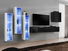 Moderní obývací stěna má působit vzdušně a má zabírat maximálně 2/3 délky stěny. Nejběžnějším typem moderní TV stěny je tzv. zábavné centrum. Taková stěna dává do popředí televizor, a tak je nejdůležitějším prvkem celé sestavy právě TV stolek nebo TV panel, na kterém je televizor zavěšen. Hlavním poselstvím moderního nábytku je hravá jednoduchost. Taková zábavní centra obsahují různé možnosti úložného prostoru a často nabízejí kombinaci zásuvek, poliček a uzavřených složek ve vitrínách, skříňkách a regálech. Příjemné večerní atmosféry v obývacím pokoji docílíte zakoupením skříněk nebo polic se zabudovaným úsporným LED osvětlením. Většinou bývají osvětleny skleněné poličky ve vitríně, ale můžete si zvolit také bodové světlo umístěné v horní poličce.