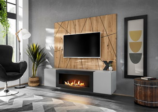 Moderní obývací stěna má působit vzdušně a má zabírat maximálně 2/3 délky stěny. Nejběžnějším typem moderní TV stěny je tzv. zábavné centrum. Taková stěna dává do popředí televizor, a tak je nejdůležitějším prvkem celé sestavy právě TV stolek nebo TV panel, na kterém je televizor zavěšen. Hlavním poselstvím moderního nábytku je hravá jednoduchost. Taková zábavní centra obsahují různé možnosti úložného prostoru a často nabízejí kombinaci zásuvek, poliček a uzavřených složek ve vitrínách, skříňkách a regálech. Příjemné večerní atmosféry v obývacím pokoji docílíte zakoupením skříněk nebo polic se zabudovaným úsporným LED osvětlením. Většinou bývají osvětleny skleněné poličky ve vitríně, ale můžete si zvolit také bodové světlo umístěné v horní poličce.