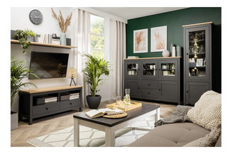 Obývací stěna BRW Hesen (s LED osvětlením) (grafit + dub artisan)