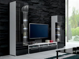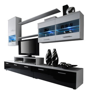 Obývací stěna Seghill 28 DWPG SK (perlově šedá + dub wellington) (s LED osvětlením)