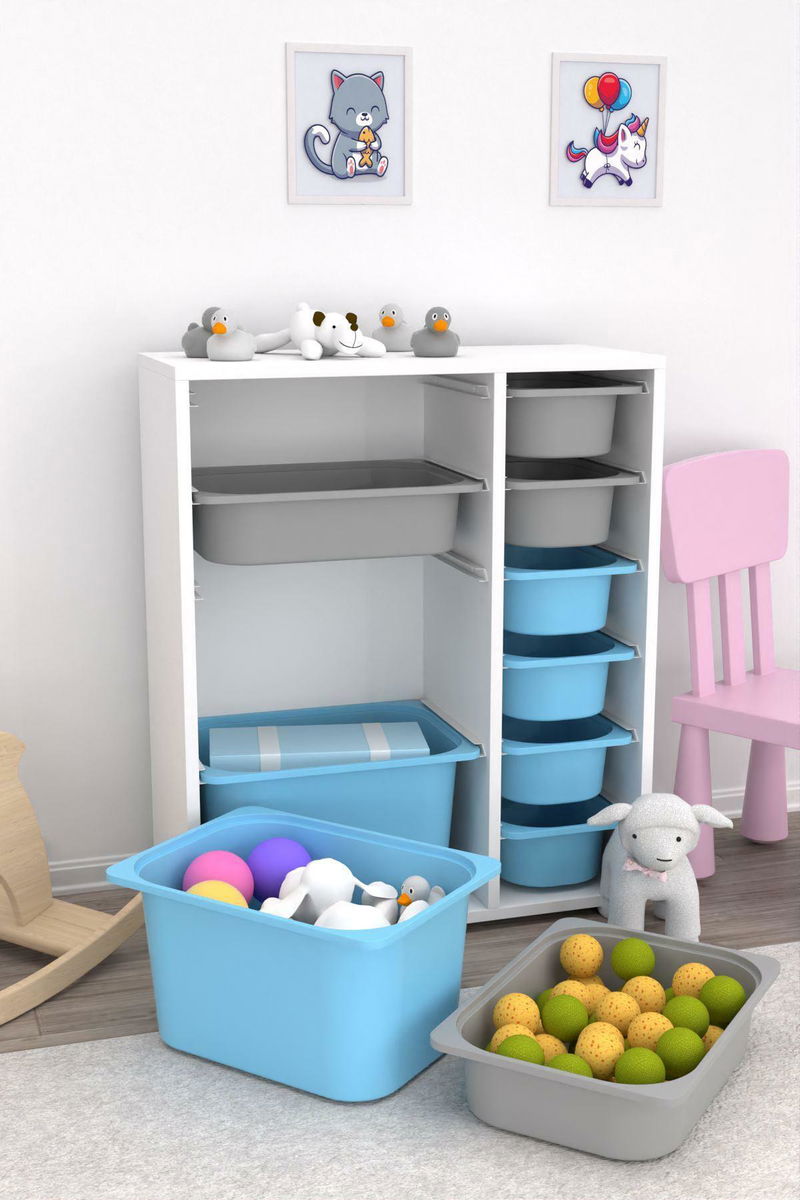 Organizér na hračky Dremonka 10 (bílá + šedá + modrá)