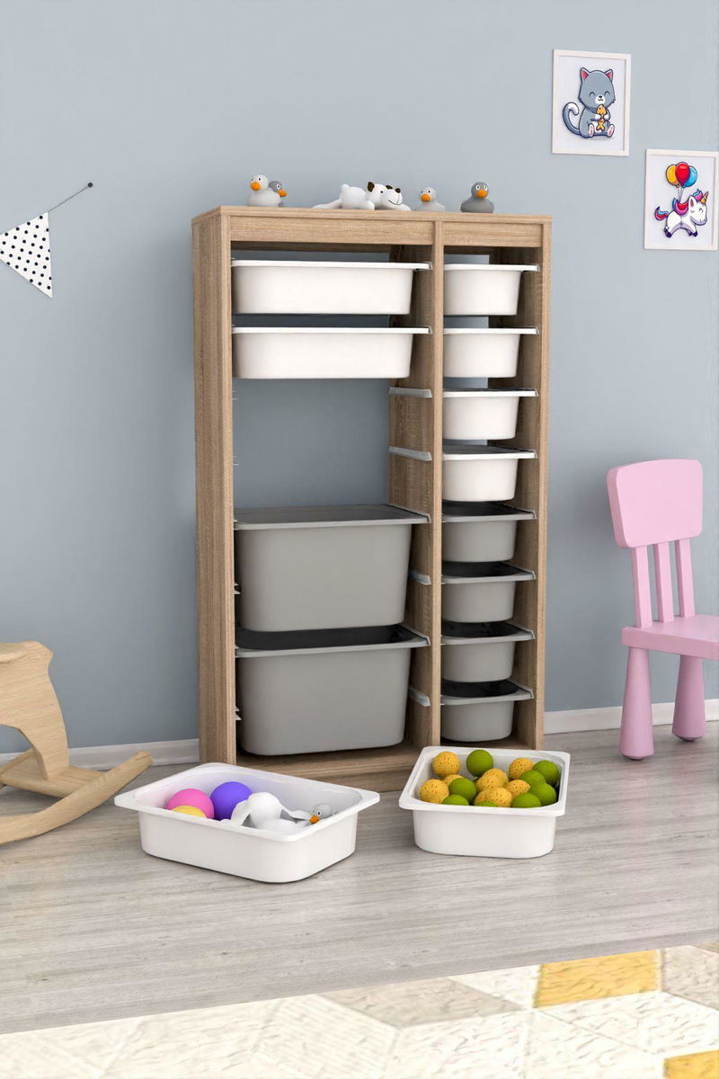 Organizér na hračky Dremonka 6 (dub sonoma + bílá + šedá)