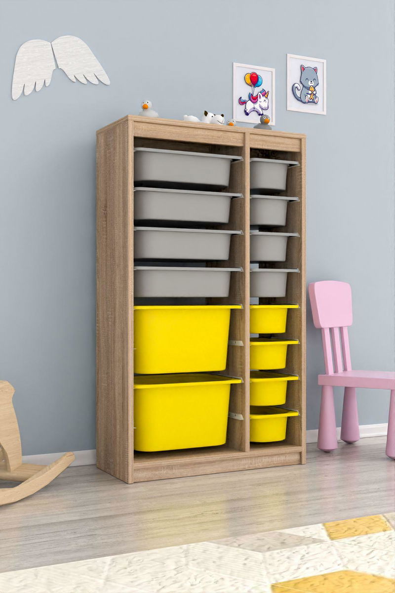 Organizér na hračky Dremonka 6 (dub sonoma + šedá + žlutá)