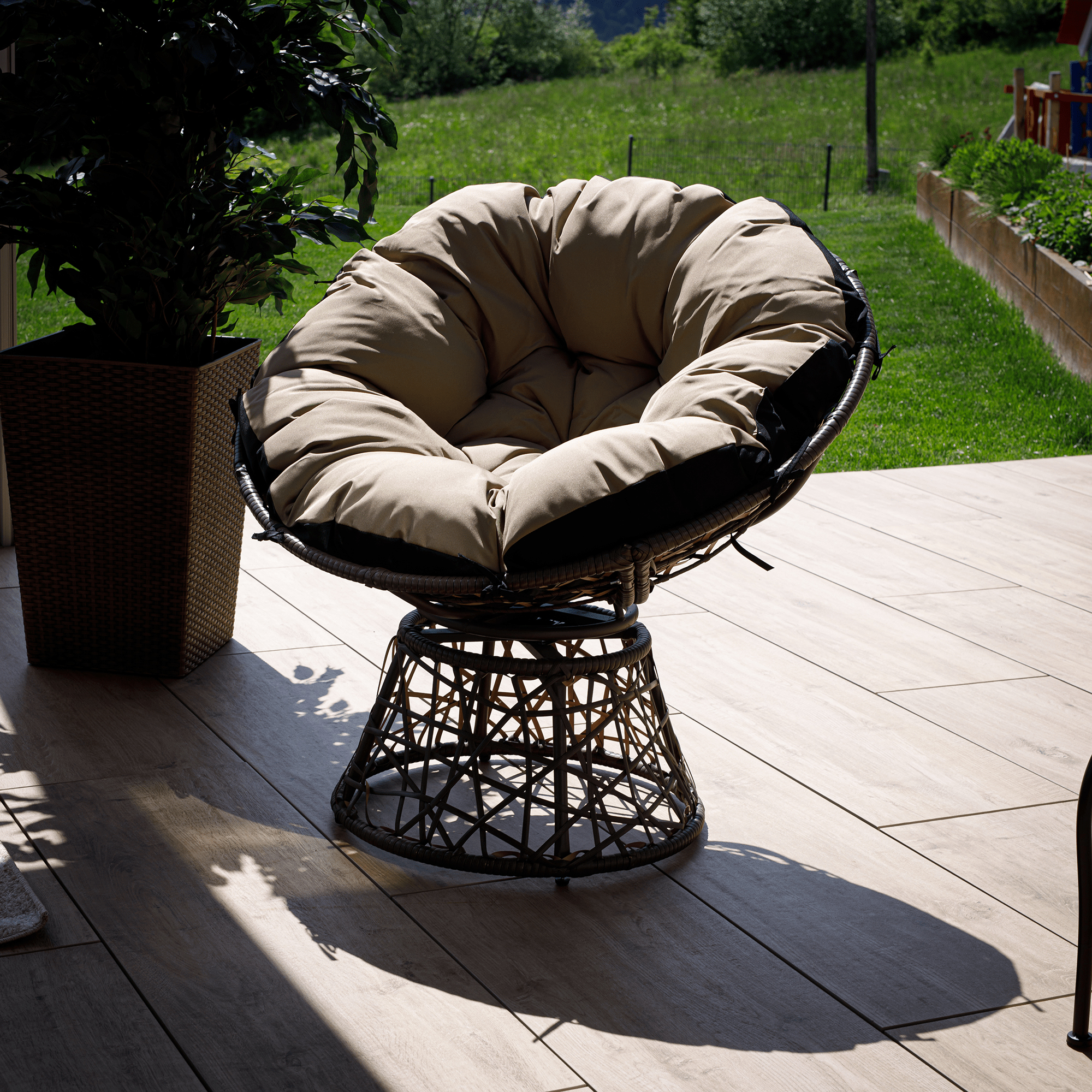 Pohodlné a stylové. Takové je otočné křeslo Frage BIG. Své místo si najde v interiéru, ale i exteriéru. Vynikne na terase či balkoně. Oceníte i jeho vodeoodolný polštář.