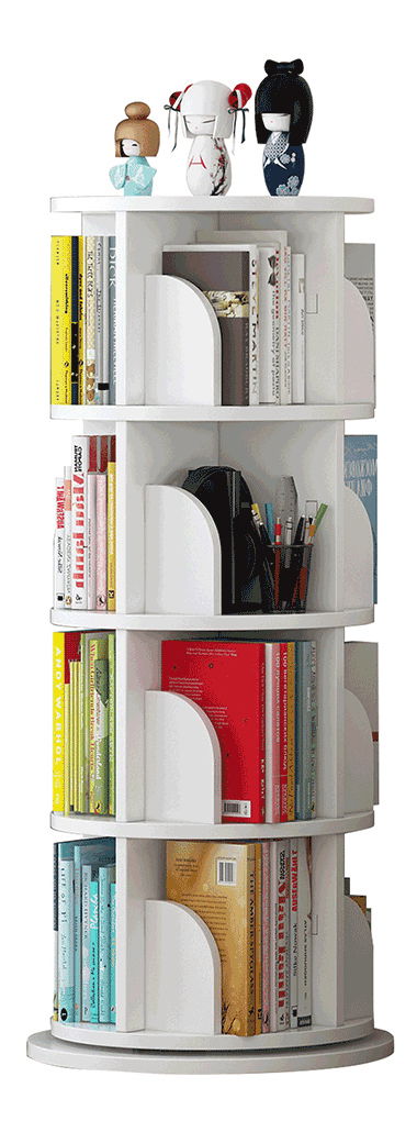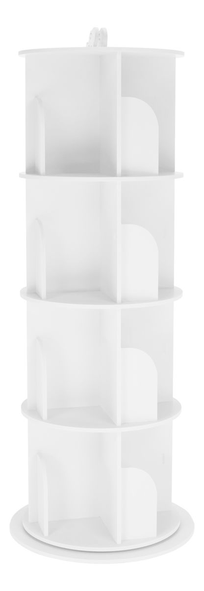 Pořiďte si otočnou knihovnu Erinal! Regál je vyroben z kvalitní MDF v bílé barvě. Regál je čtyřpatrový, poskytuje odkládací prostor pro cca 80 knih. Erinal samozřejmě můžete použít ik odložení jiných věcí, jako jsou kancelářské potřeby, malířské pomůcky či různé potřeby pro vaše děti, jakož i fotografie či dekorace. Montáž je jednoduchá, jedná se o skládačkový systém, kde se jednotlivé díly do sebe zacvakají. Regál je otočný o 360°. Všechna patra se otáčejí jedním směrem a najednou.