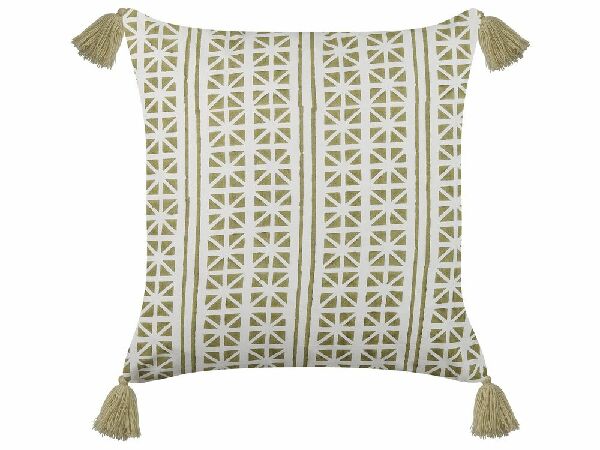 Ozdobte svou pohovku tímto nádherným polštářem s ozdobnými třásněmi a geometrickým vzorem vyrobeným technikou blokového tisku. Polštář je vyroben z bavlny, která zaručuje pohodlí při používání. Díky svému designu je vhodným doplňkem do interiérů v boho nebo vintage stylu.