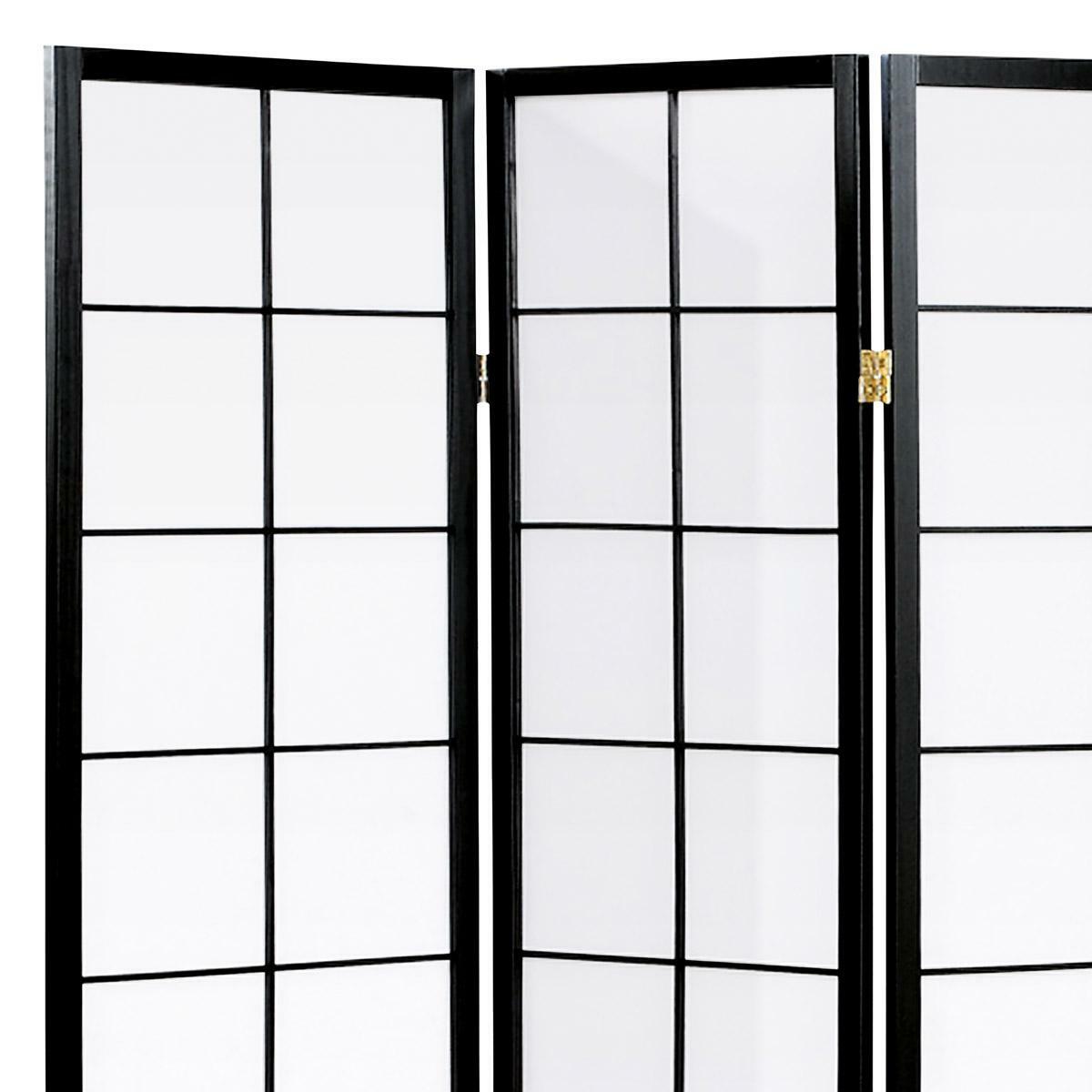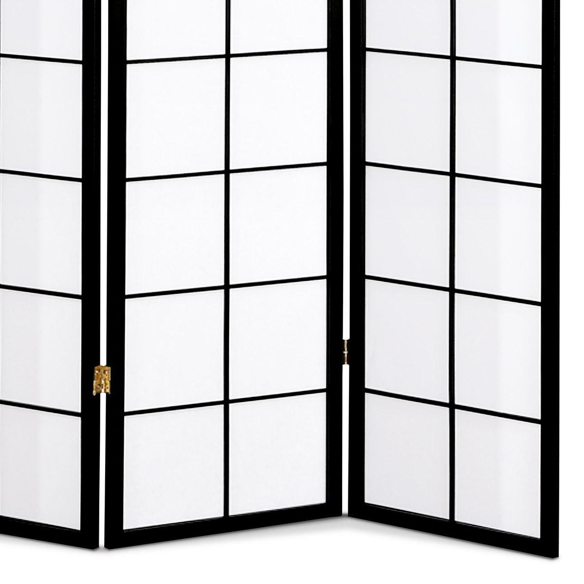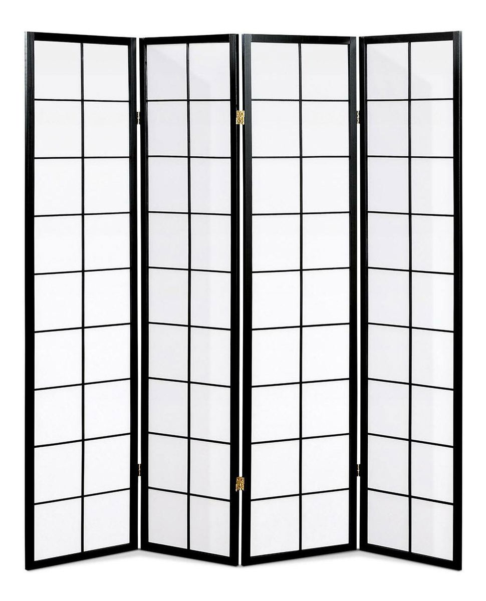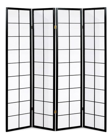 4-dílný volně stojící paravan s konstrukcí z masivního smrkového dřeva v černém odstínu, lakovaný transparentním lakem a výplní z bílé netkané textilie. Plní nejen funkci okrasnou, ale také praktickou. Lze jej použít jako zástěnu nebo diskrétní i optickou dělící příčku nejen v bytě, ale také v komerčních prostorách. Díky skládací konstrukci a celkové nízké hmotnosti jej lze bez problémů přemísťovat a manipulovat s ním. Kombinace dřeva a netkané textilie působí vzdušným dojmem, stylově lze paraván umístit do jakkoli zařízeného interiéru. V každém si najde zasloužené místo. Výška paravánu je 180 cm, šířka jednoho dílu 44 cm, celková plná šířka je 174 cm. Tloušťka stěny jsou 2 cm. Stěny paravánu jsou k sobě připevněny kovovými pomosazenými panty. Celková hmotnost je 6,5 kg.