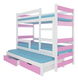 Patrová dětská postel 180x75 cm Karin (s roštem a matrací) (bílá + růžová)