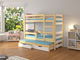 Postel KARIN je patrová postel, která přináší do dětského pokoje šarm a praktické využití prostoru. Je vyrobena z kvalitního borovicového dřeva, přičemž střed postele a čela šuplíků jsou z MDF desky, což poskytuje spojení pevnosti a elegance. KARIN je vybavena roštem vyrobeným z pružných lamel, které zajišťují správnou podporu a pohodlí pro vaše dítě. S pěnovou matrací s odnímatelným povlakem na zip bude mít váš malý zlatíčko dokonalý spánek plný snů a odpočinku. Tato postel nabízí třetí výsuvné lůžko, což znamená, že máte možnost přidat další místo ke spaní, když to bude nutné. Bariéra proti spadnutí zajišťuje bezpečnost na horním lůžku, aby vaše dítě mělo klidný a bezstarostný spánek. KARIN také disponuje úložným prostorem ve formě dvou vysouvacích zásuvek na pryžových kolečkách. Tyto zásuvky jsou ideální pro uskladnění oblečení, hraček a dalších věcí, což pomáhá udržovat pokoj vašeho dítěte čistý a uklizený. S plochou na spaní 180 x 75 cm pro horní lůžko a 172 x 75 cm pro spodní výsuvné lůžko, KARIN poskytuje dostatek místa pro pohodlný spánek a relaxaci. Vaše děti budou mít vlastní prostor, kde si mohou užívat svá dobrodružství, hry a příjemné chvíle.