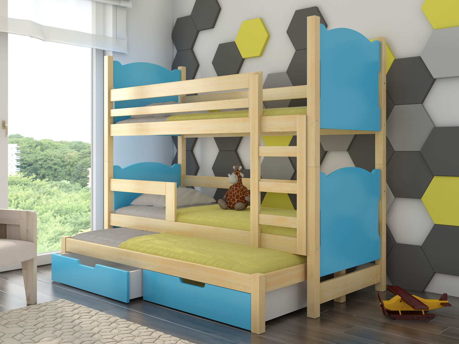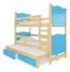 Patrová dětská postel 180x75 cm Lukrece (s roštem a matrací) (borovice + modrá)