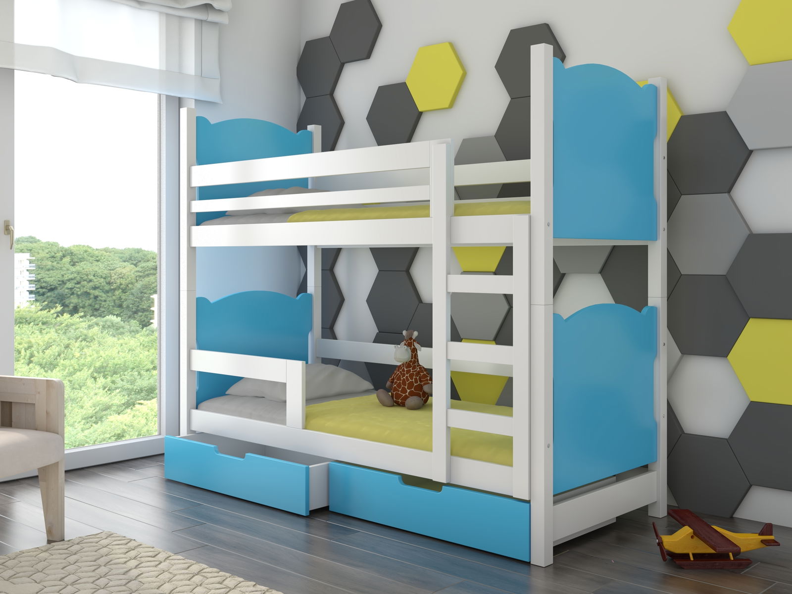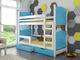 Patrová dětská postel 180x75 cm Marryann (s roštem a matrací) (bílá + modrá)