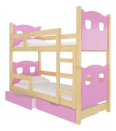 Patrová dětská postel 180x75 cm Marryann (s roštem a matrací) (borovice + růžová)