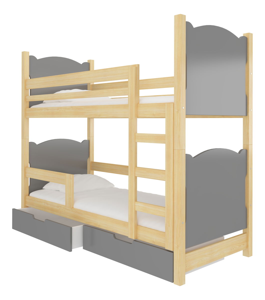 Patrová dětská postel 180x75 cm Marryann (s roštem a matrací) (borovice + šedá)