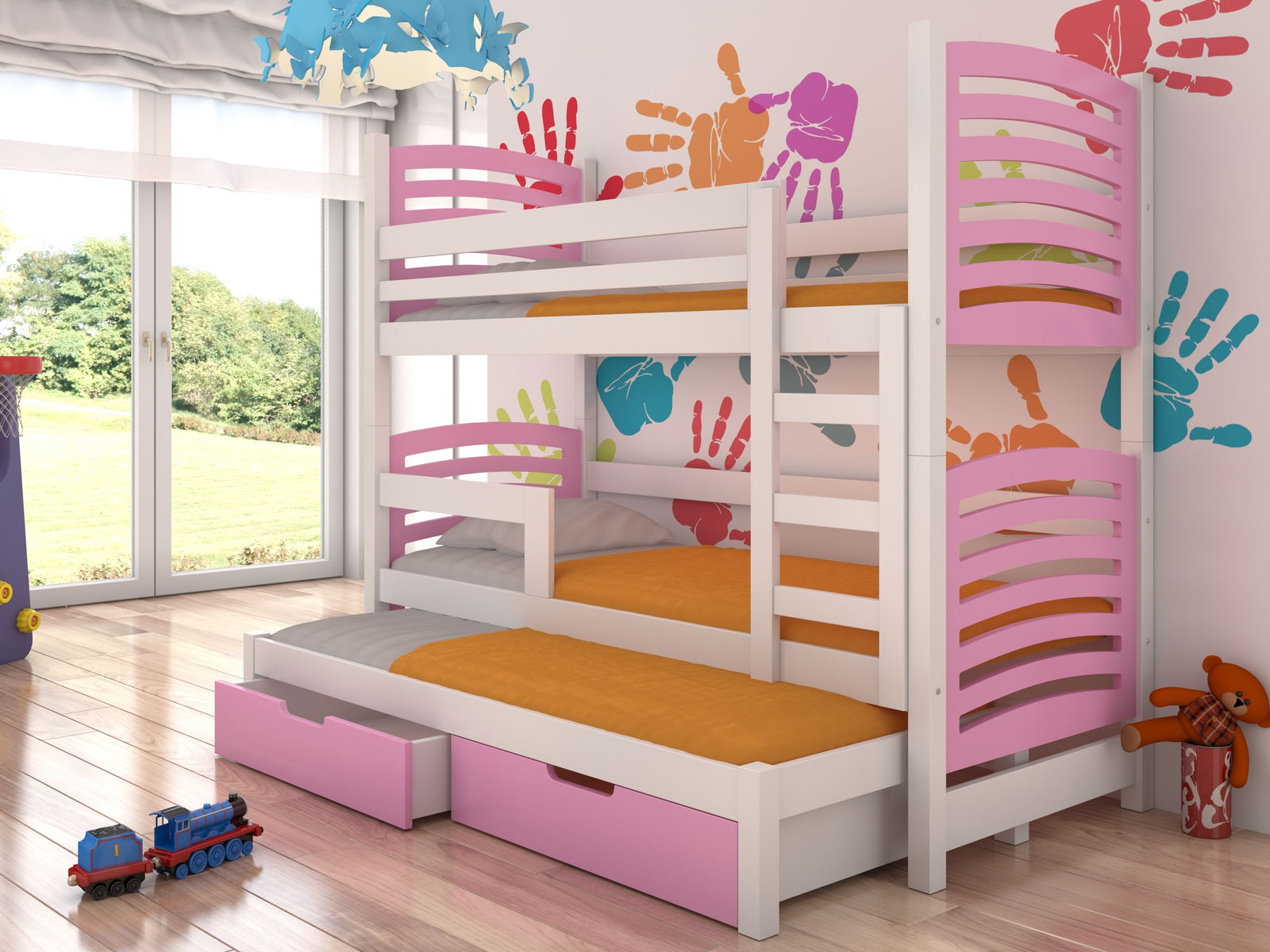 Tato patrová postýlka je vytvořena s láskou a péčí, aby vaše děti měly bezpečný a útulný spánek. STANISLAVA je vyrobena z kvalitního borového dřeva, což přináší do vašeho domova přírodní krásu a teplo. Střed postele a čela šuplíků jsou z MDF desky, která zaručuje pevnost a trvanlivost. Tato kombinace materiálů dodává postýlce STANISLAVA moderní vzhled, který okouzlí každého. Vaše děti si ve STANISLAVU užijí skvělý spánek. Její rošt je vyroben z pružných lamel, které poskytují optimální podporu pro zdravý a pohodlný spánek. A s pěnovou matrací vybavenou odnímatelným povlakem na zip je čištění a udržování matrace jednoduché a praktické. Jaký je to skvost! Postýlka STANISLAVA disponuje dvěma vysouvacími zásuvkami na gumových kolečkách, které poskytují dostatek úložného prostoru pro hračky, knihy a všechny důležité věci. Váš dětský pokoj bude vždy čistý, uklizený a organizovaný. Plocha na spaní ve STANISLAVE je víceúrovňová, s horním lůžkem o rozměru 180 x 75 cm a spodním výsuvným lůžkem o rozměru 172 x 75 cm. Vaše děti budou mít dostatek místa pro pohodlný spánek, a to nejen na horním, ale i na spodním lůžku. S bariérou proti spadnutí můžete mít jistotu, že vaše děti budou bezpečné a chráněné.