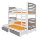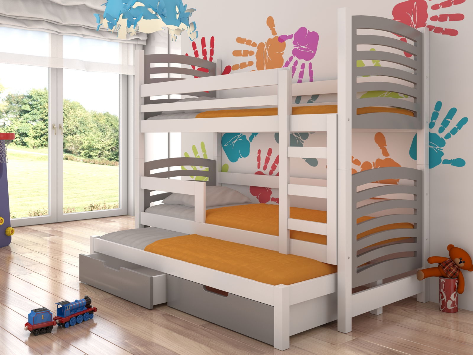 Tato patrová postýlka je vytvořena s láskou a péčí, aby vaše děti měly bezpečný a útulný spánek. STANISLAVA je vyrobena z kvalitního borového dřeva, což přináší do vašeho domova přírodní krásu a teplo. Střed postele a čela šuplíků jsou z MDF desky, která zaručuje pevnost a trvanlivost. Tato kombinace materiálů dodává postýlce STANISLAVA moderní vzhled, který okouzlí každého. Vaše děti si ve STANISLAVU užijí skvělý spánek. Její rošt je vyroben z pružných lamel, které poskytují optimální podporu pro zdravý a pohodlný spánek. A s pěnovou matrací vybavenou odnímatelným povlakem na zip je čištění a udržování matrace jednoduché a praktické. Jaký je to skvost! Postýlka STANISLAVA disponuje dvěma vysouvacími zásuvkami na gumových kolečkách, které poskytují dostatek úložného prostoru pro hračky, knihy a všechny důležité věci. Váš dětský pokoj bude vždy čistý, uklizený a organizovaný. Plocha na spaní ve STANISLAVE je víceúrovňová, s horním lůžkem o rozměru 180 x 75 cm a spodním výsuvným lůžkem o rozměru 172 x 75 cm. Vaše děti budou mít dostatek místa pro pohodlný spánek, a to nejen na horním, ale i na spodním lůžku. S bariérou proti spadnutí můžete mít jistotu, že vaše děti budou bezpečné a chráněné.