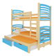 Patrová dětská postel 180x75 cm Stanislava (s roštem a matrací) (borovice + modrá)