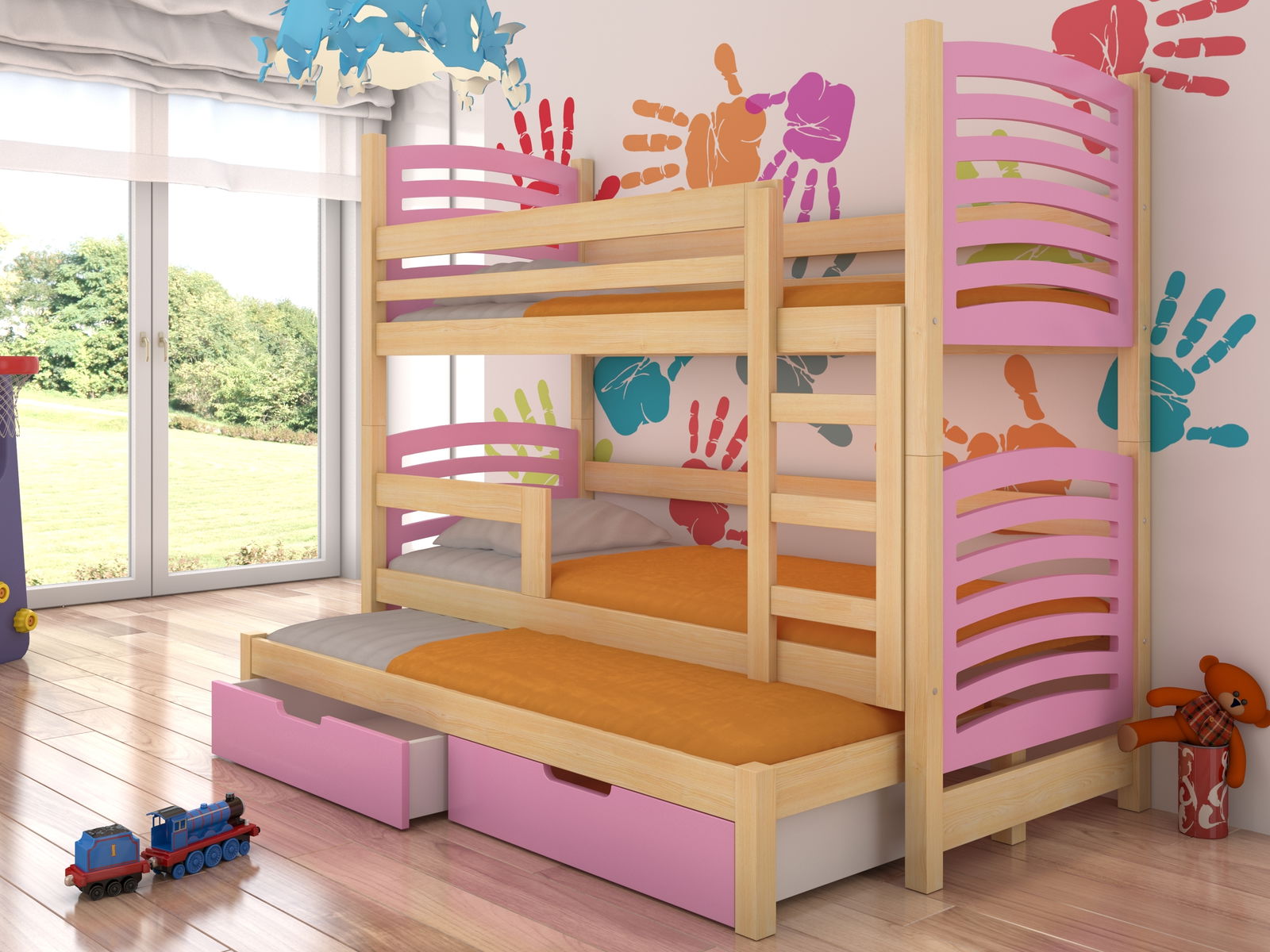 Tato patrová postýlka je vytvořena s láskou a péčí, aby vaše děti měly bezpečný a útulný spánek. STANISLAVA je vyrobena z kvalitního borového dřeva, což přináší do vašeho domova přírodní krásu a teplo. Střed postele a čela šuplíků jsou z MDF desky, která zaručuje pevnost a trvanlivost. Tato kombinace materiálů dodává postýlce STANISLAVA moderní vzhled, který okouzlí každého. Vaše děti si ve STANISLAVU užijí skvělý spánek. Její rošt je vyroben z pružných lamel, které poskytují optimální podporu pro zdravý a pohodlný spánek. A s pěnovou matrací vybavenou odnímatelným povlakem na zip je čištění a udržování matrace jednoduché a praktické. Jaký je to skvost! Postýlka STANISLAVA disponuje dvěma vysouvacími zásuvkami na gumových kolečkách, které poskytují dostatek úložného prostoru pro hračky, knihy a všechny důležité věci. Váš dětský pokoj bude vždy čistý, uklizený a organizovaný. Plocha na spaní ve STANISLAVE je víceúrovňová, s horním lůžkem o rozměru 180 x 75 cm a spodním výsuvným lůžkem o rozměru 172 x 75 cm. Vaše děti budou mít dostatek místa pro pohodlný spánek, a to nejen na horním, ale i na spodním lůžku. S bariérou proti spadnutí můžete mít jistotu, že vaše děti budou bezpečné a chráněné.
