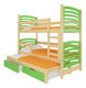 Patrová dětská postel 180x75 cm Stanislava (s roštem a matrací) (borovice + zelená)