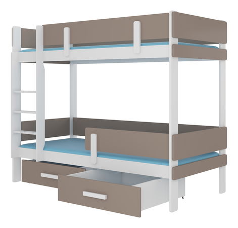 Patrová dětská postel 180x80 cm Ellen (s roštem a matrací) (bílá + truflová)