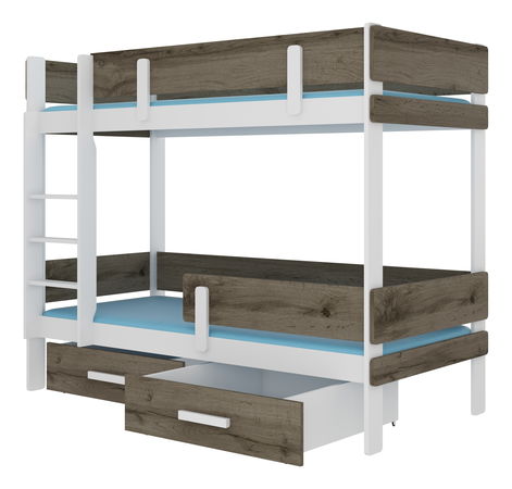 Patrová dětská postel 180x80 cm Ellen (s roštem) (bílá + dub šedý)