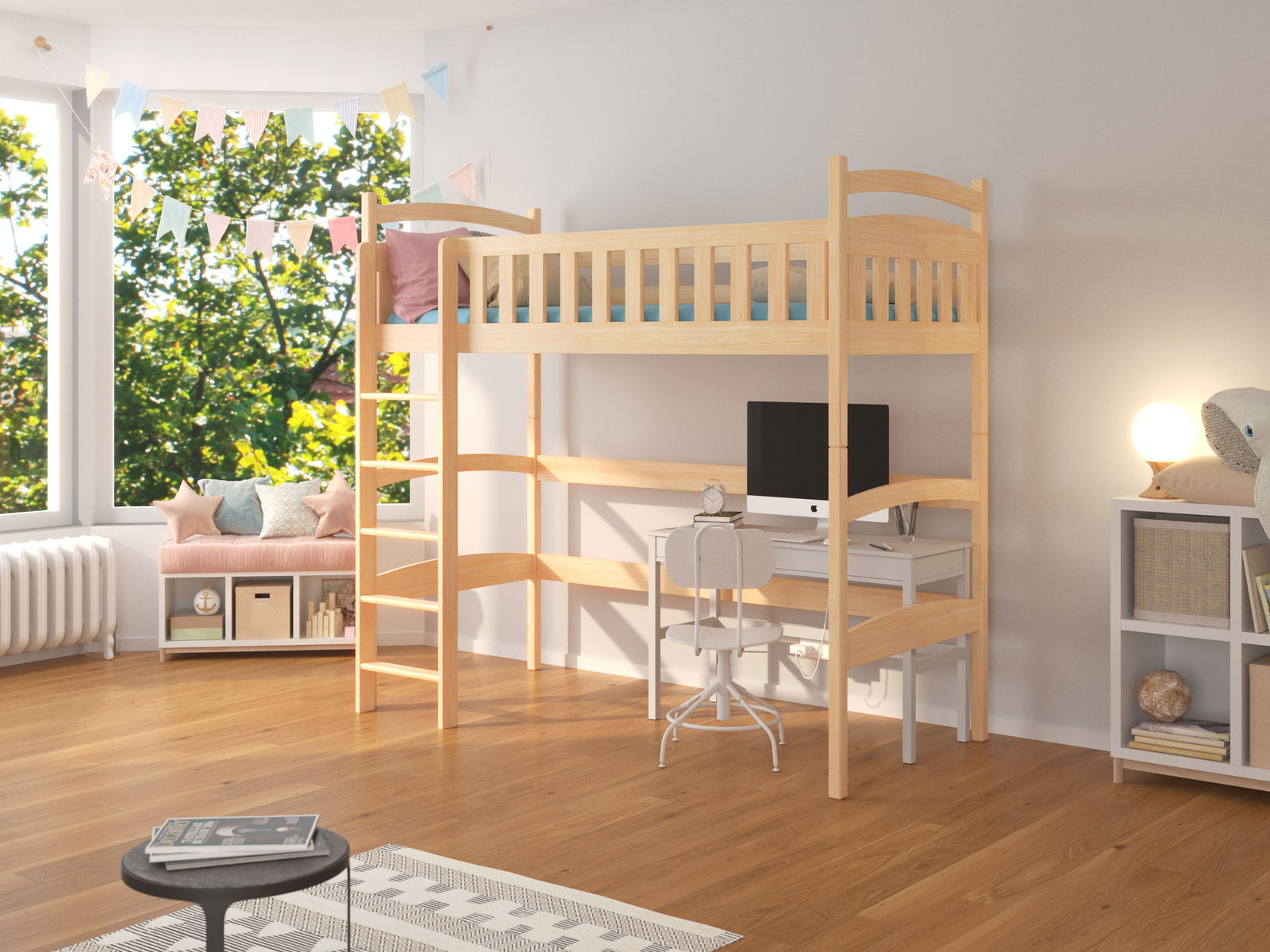 Uvolněte svou fantazii s dětskou postelí MILO. Tato jednolůžková patrová postel přinese do dětského pokoje nejen pohodlné místo na spaní, ale také praktické řešení pro studium a uskladnění věcí. Je vyrobena z kvalitního borového dřeva, přičemž nohy mají tloušťku 40x40 mm a ostatní prvky tloušťku 20-22 mm, což zaručuje její pevnost a odolnost. MILO je vybavena lamelovým roštem o tloušťce 2 cm, který poskytuje optimální oporu a pohodlí. S pěnovou matrací s odnímatelným povlakem na zip se vaše dítě bude cítit pohodlně a může si vychutnat klidný spánek. Pod postelí se nachází prostor, kde můžete umístit psací stůl, skříňky nebo další úložná řešení. To vám umožní využít prostor v pokoji efektivně a udržet ji uklizenou. S plochou na spaní 80x180 cm nabízí postel MILO dostatek místa pro pohodlný spánek. Bariéra proti spadnutí zajišťuje bezpečnost vašeho dítěte, a to zejména v horní části postele. MILO rovněž nabízí možnost výběru strany žebříku, což vám umožňuje přizpůsobit postýlku podle preferencí a prostoru v pokoji.