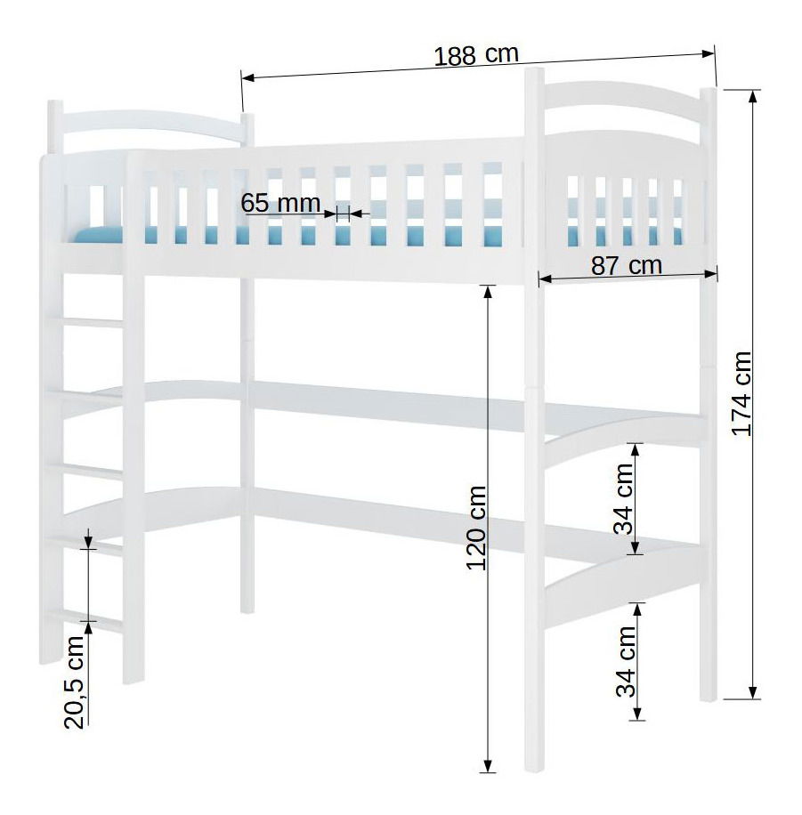 ZobrazitUvolněte svou fantazii s dětskou postelí MILO. Tato jednolůžková patrová postel přinese do dětského pokoje nejen pohodlné místo na spaní, ale také praktické řešení pro studium a uskladnění věcí. Je vyrobena z kvalitního borového dřeva, přičemž nohy mají tloušťku 40x40 mm a ostatní prvky tloušťku 20-22 mm, což zaručuje její pevnost a odolnost. MILO je vybavena lamelovým roštem o tloušťce 2 cm, který poskytuje optimální oporu a pohodlí. Pod postelí se nachází prostor, kde můžete umístit psací stůl, skříňky nebo další úložná řešení. To vám umožní využít prostor v pokoji efektivně a udržet ji uklizenou. S plochou na spaní 80x180 cm nabízí postel MILO dostatek místa pro pohodlný spánek. Bariéra proti spadnutí zajišťuje bezpečnost vašeho dítěte, a to zejména v horní části postele. MILO rovněž nabízí možnost výběru strany žebříku, což vám umožňuje přizpůsobit postýlku podle preferencí a prostoru v pokoji.