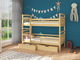 Tato patrová postýlka je vyrobena z kvalitního borového dřeva, které dodává postýlce pevnost a přirozený šarm. Materiál má různou tloušťku – nohy mají tloušťku 40x40 mm, zatímco ostatní prvky mají tloušťku 20-22 mm. ADRIANA je vybavena lamelovým roštem o tloušťce 2 cm, který zajišťuje spolehlivou oporu a nosnost až 90 kg. S pěnovou matrací s odnímatelným povlakem na zip poskytuje vaší malinké hvězdě maximální komfort a podporu při spánku. Postýlka ADRIANA také disponuje praktickým úložným prostorem v podobě dvou vysouvacích zásuvek na pryžových kolečkách. Tyto zásuvky poskytují dostatek místa na uschování hraček, oblečení a dalších věcí, čímž udržují pokoj vašeho dítěte uklizený a organizovaný. S spací plochou 90x200 cm má vaše dítě dostatek místa pro klidný a pohodlný spánek. Horní lůžko je vybaveno bariérou proti spadnutí, která zajišťuje bezpečnost a zabraňuje pádu z postele. ADRIANA má také možnost výběru strany žebříku, což umožňuje přizpůsobit postýlku dle potřeb a preferencí.