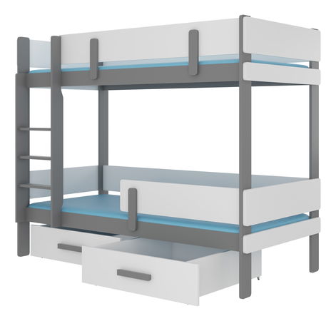 Patrová dětská postel 200x90 cm Ellen (s roštem a matrací) (šedá + bílá)