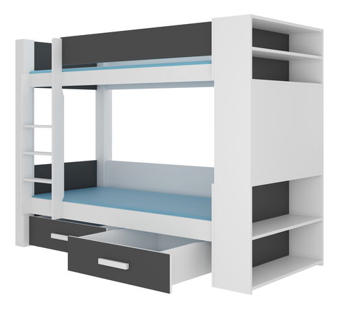Patrová dětská postel 200x90 cm Gabriela (s roštem a matrací) (bílá + antracit)