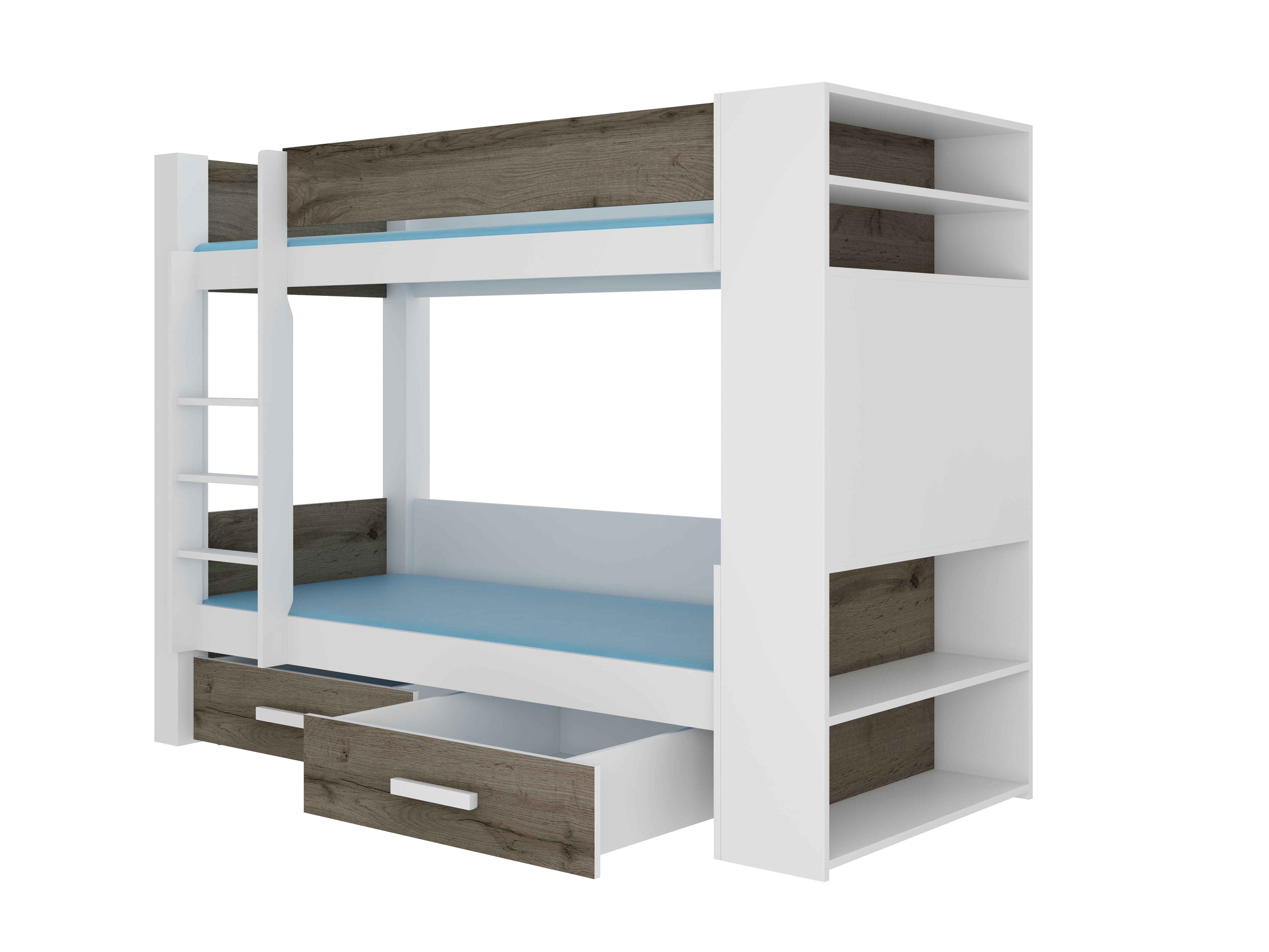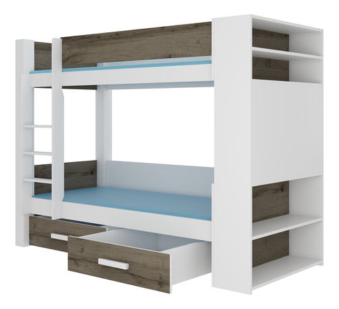 Patrová dětská postel 200x90 cm Gabriela (s roštem) (bílá + dub šedý)