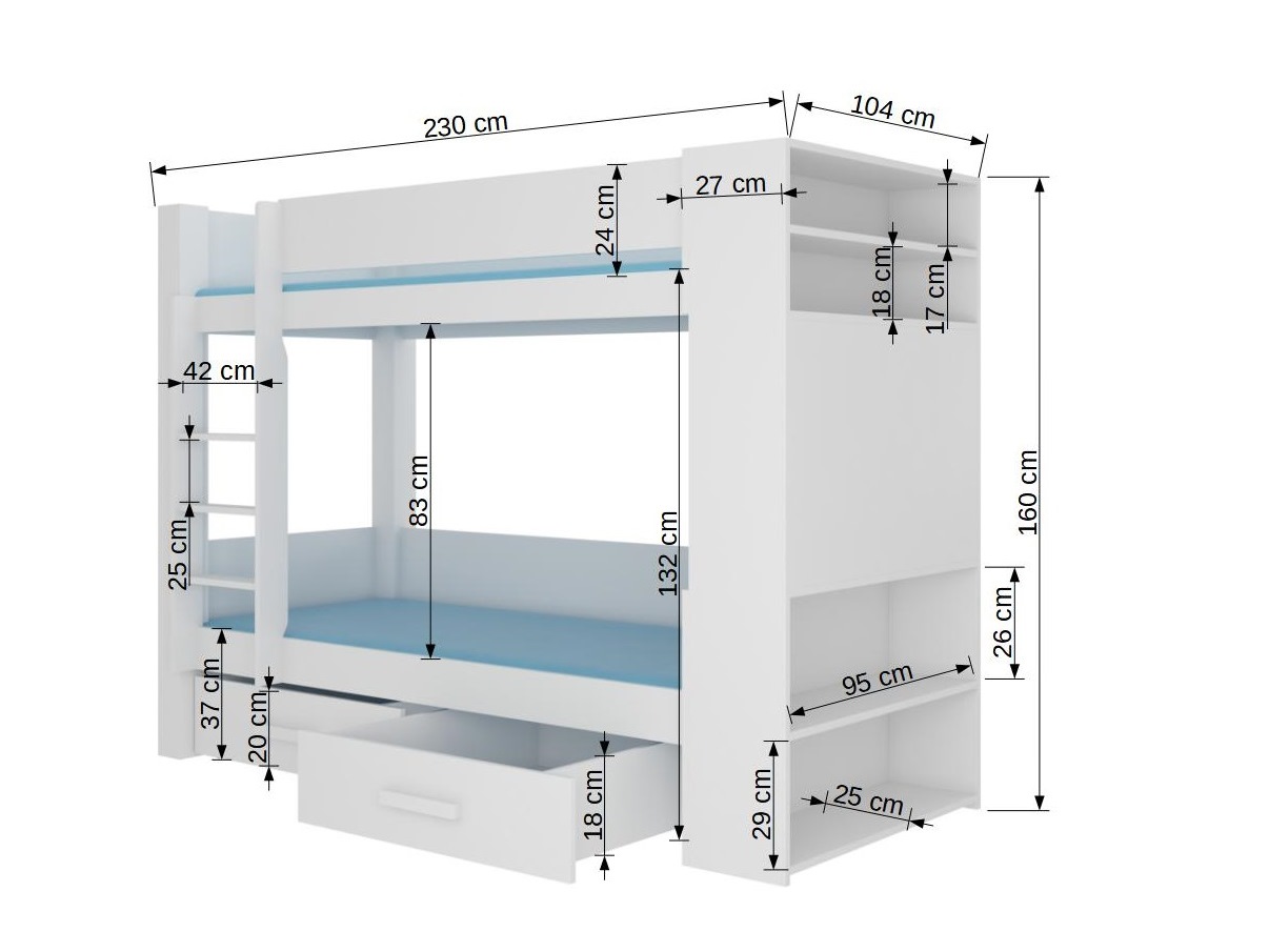 Tato patrová postýlka kombinuje jednoduché linie s praktičností a prostorem, aby vaše děti měly nejen místo pro spánek, ale také pro hraní a objevování. GABRIELA je vyrobena z kvalitního borovicového dřeva v kombinaci s laminovanou deskou o tloušťce 18 mm, která dodává postýlce pevnost a odolnost. Její ABS hrany zajišťují ochranu před poškrábáním a zaručují dlouhou životnost. Postýlka je vybavena roštem z borovicového dřeva tloušťky 2 cm, který poskytuje spolehlivou podporu pro matraci. Matrace není součástí postýlky, takže si můžete vybrat tu, která nejlépe vyhovuje potřebám vašich dětí. Kromě toho GABRIELA disponuje praktickým zezadu policovým systémem, který poskytuje dostatek místa na uskladnění hraček, knih nebo jiných věcí, aby se dětský pokoj stal pořádným a organizovaným. Tato postýlka nabízí dvě plochy na spaní o velikosti 90x200 cm, čímž poskytuje dostatek prostoru pro sny a odpočinek. Vaše děti se mohou vyřádit na svém vlastním místě, kde budou moci snít o dobrodružstvích a tvořit nekonečné příběhy. Bariéra proti spadnutí je součástí GABRIELY, čímž se zajišťuje bezpečnost a ochrana pro vaše děti. Patrový design této postýlky přidává prostorovou úsporu a umožňuje různorodé využití dětského pokoje.
