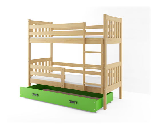 Patrová postel 80 x 160 cm Carius B (borovice + zelená) (s rošty, matracemi a úl. prostorem)
