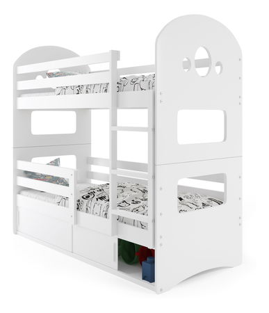 Patrová postel 80 x 160 cm Domur (bílá + bílá) (s rošty, matracemi a úl. prostorem)
