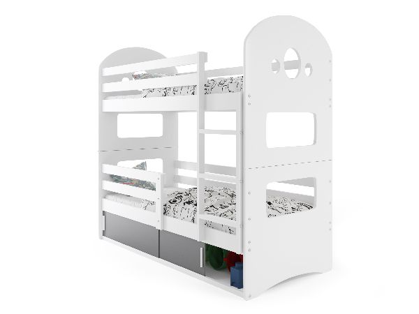 Patrová postel 80 x 160 cm Domur (bílá + grafit) (s rošty, matracemi a úl. prostorem)