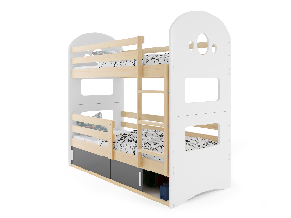 Patrová postel 80 x 160 cm Domur (borovice + grafit) (s rošty, matracemi a úl. prostorem)