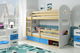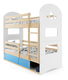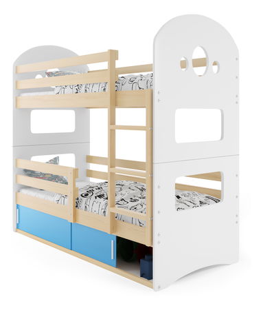 Patrová postel 80 x 160 cm Domur (borovice + modrá) (s rošty, matracemi a úl. prostorem)