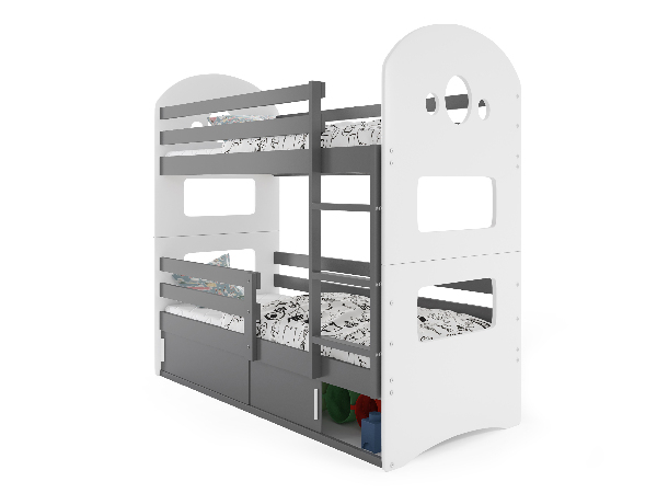 Patrová postel 80 x 160 cm Domur (grafit + grafit) (s rošty, matracemi a úl. prostorem)
