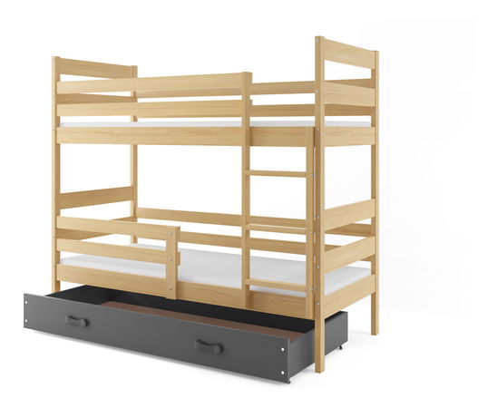 Patrová postel 80 x 160 cm Eril B (borovice + grafit) (s rošty, matracemi a úl. prostorem)