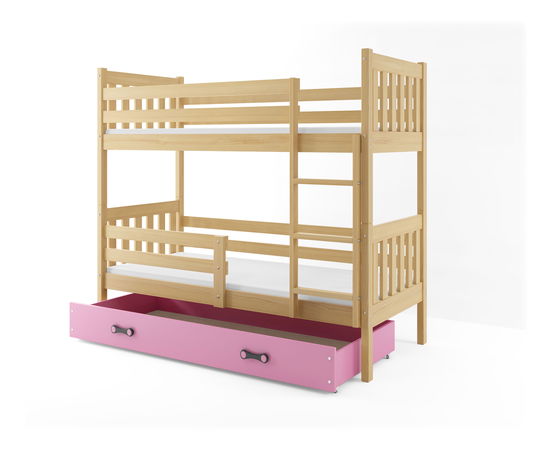 Patrová postel 80 x 190 cm Carius B (borovice + růžová) (s rošty, matracemi a úl. prostorem)
