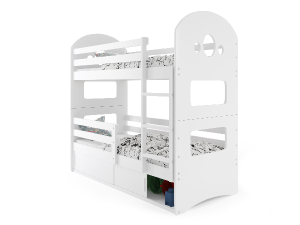 Patrová postel 80 x 190 cm Domur (bílá + bílá) (s rošty, matracemi a úl. prostorem)