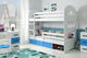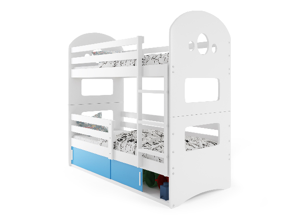 Patrová postel 80 x 190 cm Domur (bílá + modrá) (s rošty, matracemi a úl. prostorem)