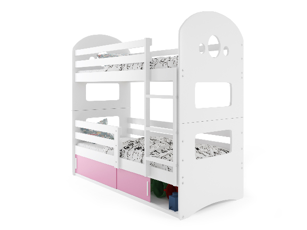Patrová postel 80 x 190 cm Domur (bílá + růžová) (s rošty, matracemi a úl. prostorem)