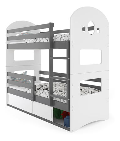 Patrová postel 80 x 190 cm Domur (grafit + bílá) (s rošty, matracemi a úl. prostorem)