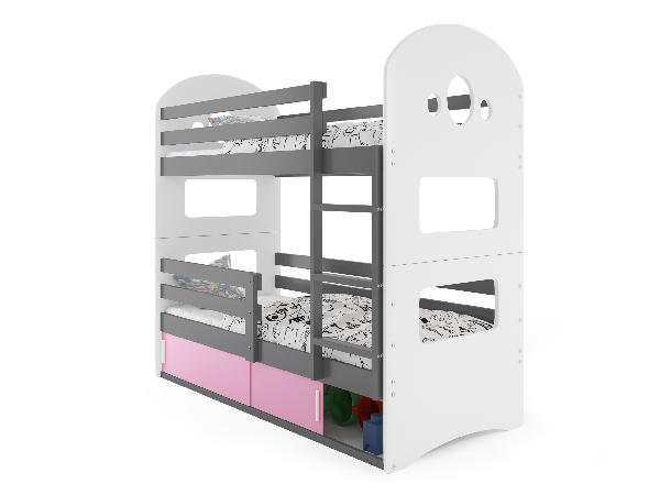 Patrová postel 80 x 190 cm Domur (grafit + růžová) (s rošty, matracemi a úl. prostorem)
