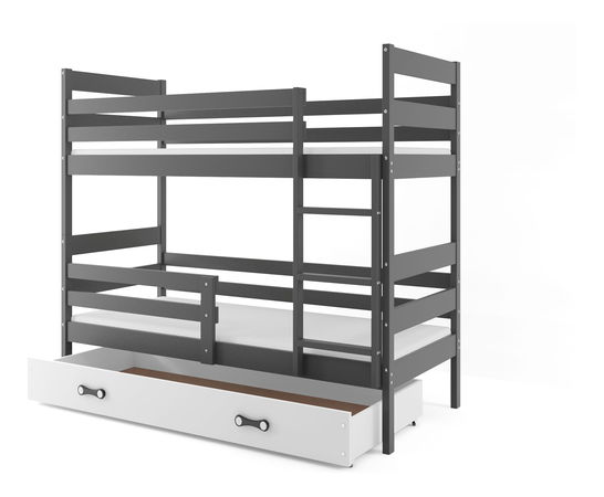 Patrová postel 80 x 190 cm Eril B (grafit + bílá) (s rošty, matracemi a úl. prostorem)