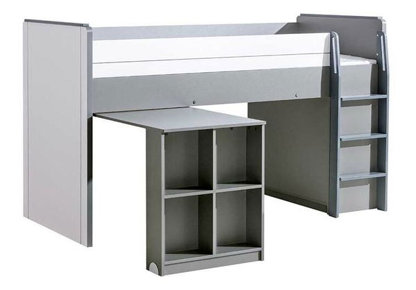Multifunkční patrová postel potěší nejedno dítě. Ve spodní části pod postelí se nachází výsuvná část, která poslouží jako PC stolek. Výsuvná část má praktické kolečko s brzdou. Na boku výsuvné části se nacházejí čtyři otevřené poličky pro uložení dekorací a knížek. V boční části postele se nachází skříňka s dvířky. Žebřík a výsuvnou část lze namontovat na levou nebo pravou stranu pod postel. Moderní design postele je doplněn o jemné barevné linie a velké barevné čtvercové úchyty. Hodí se zejména do dětského nebo studentského pokoje.