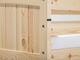 Tato dřevěná patrová postel je chytrým řešením pro ložnice s omezeným prostorem, a to zejména pro dětské pokoje a pokoje teenagerů a teenagerů. Konstrukce je vyrobena z pevného borovicového dřeva a její součástí je také žebřík. Díky svému minimalistickému designu inspirovanému skandinávským stylem se tato patrová postel hodí do různých interiérů. Doporučená výška matrace na horní patrové posteli je méně než 13 cm, aby byla zajištěna maximální bezpečnost.